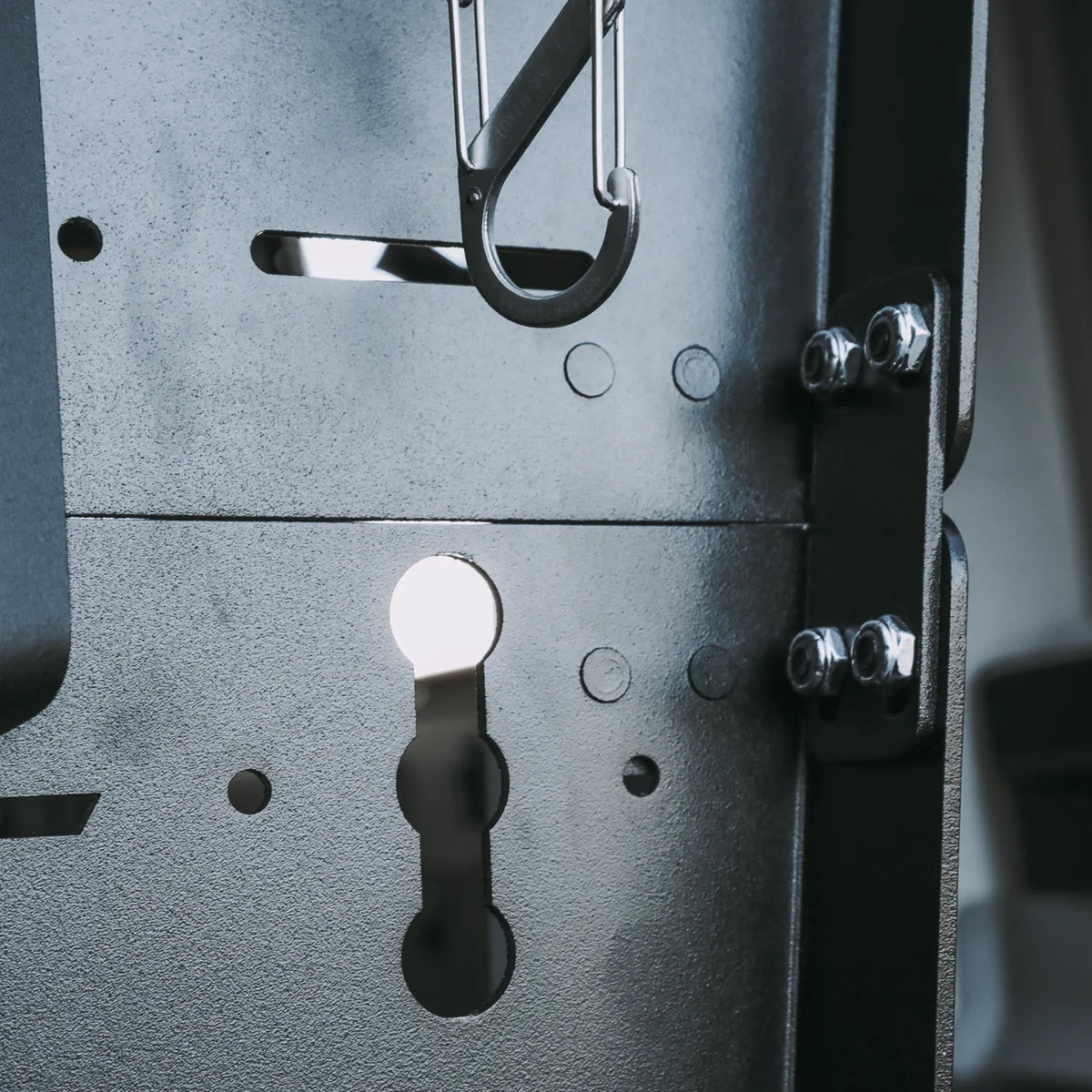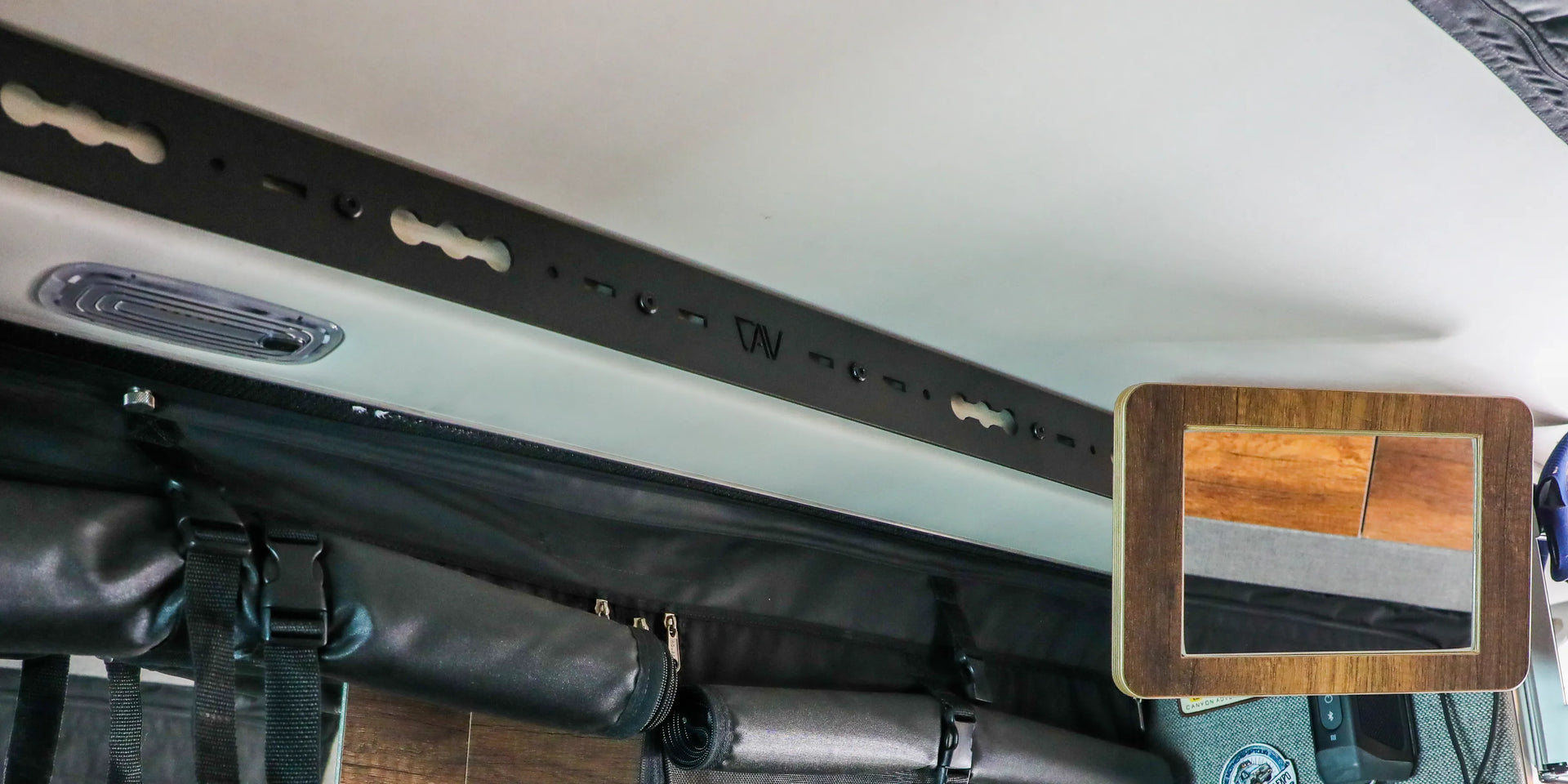 Premium L-Track mounting system for the rear doors of your Storyteller Overland MODE.